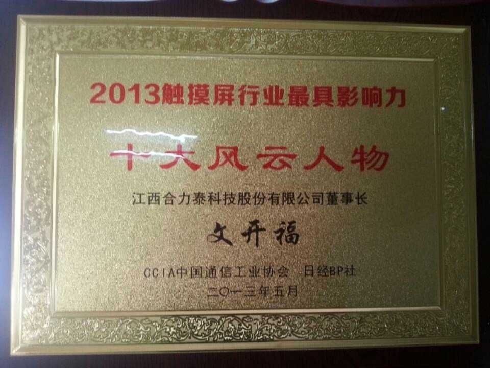 At the award ceremony held concurrently with the 6th Shenzhen International Touchscreen Technology and Equipment Exhibition on May 23rd, 2013, Jiangxi Holitech Technology Limited Liability Company won the “Top 10 Most Influential Enterprises” award in the touchscreen industry, and President Wen Kaifu won the “Top 10 Celebrities” award. The ceremony was held at the Shenzhen Convention and Exhibition Center. Jin Bo, Director and Vice President of the company attended the award ceremony.
