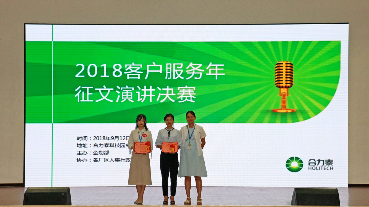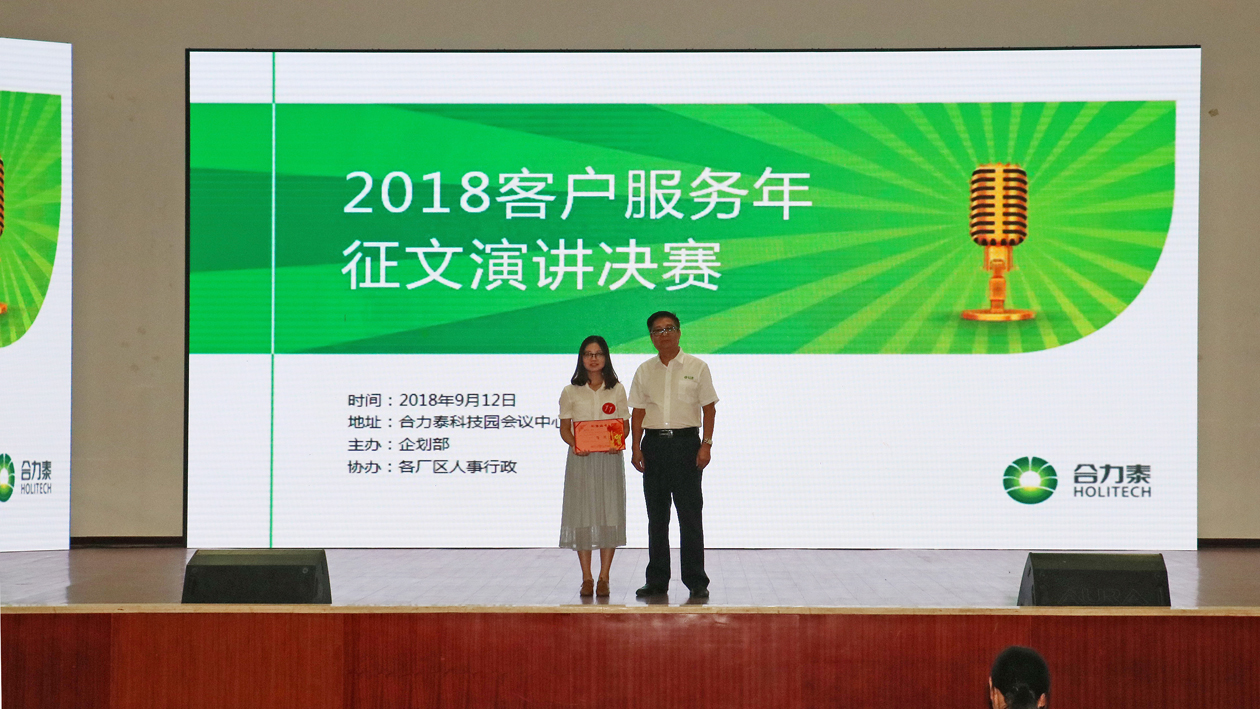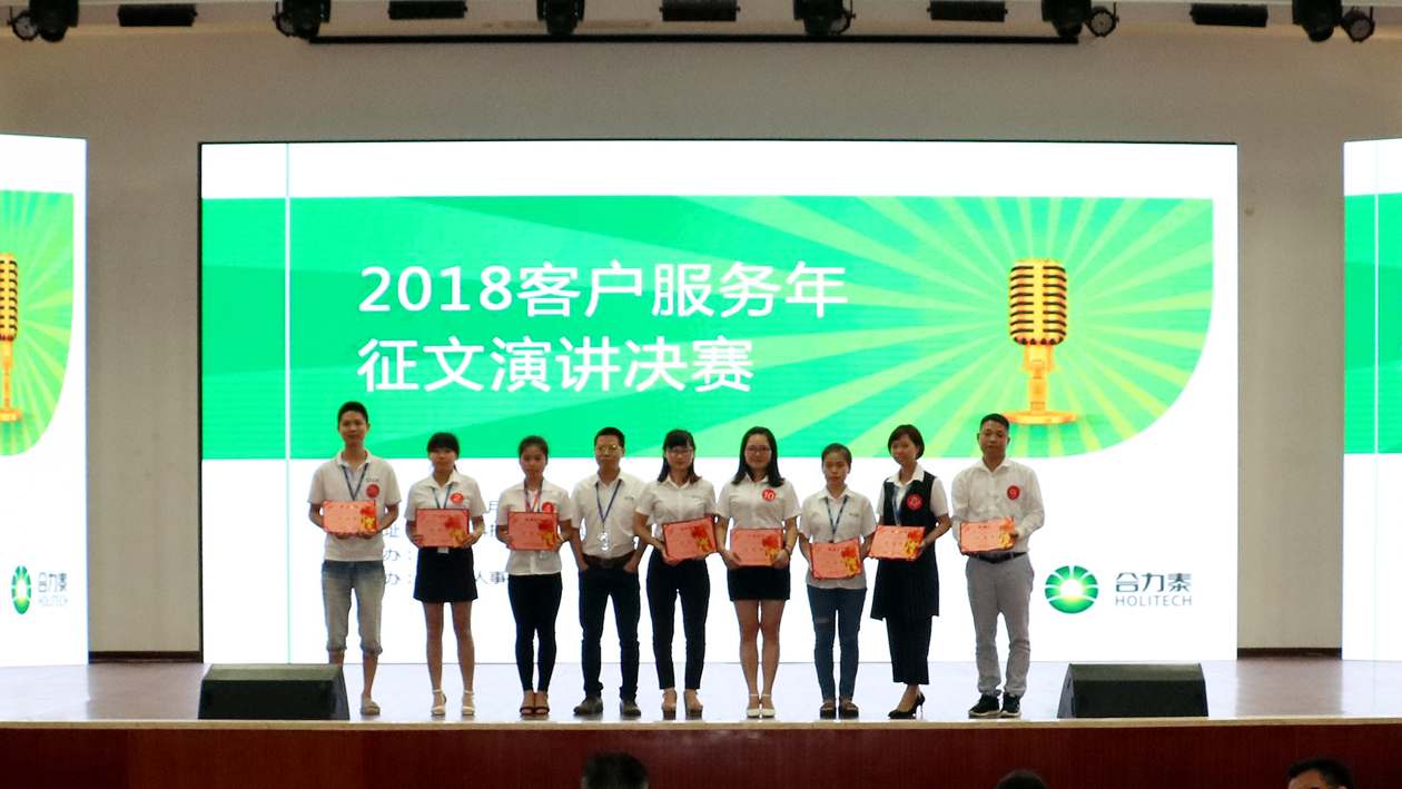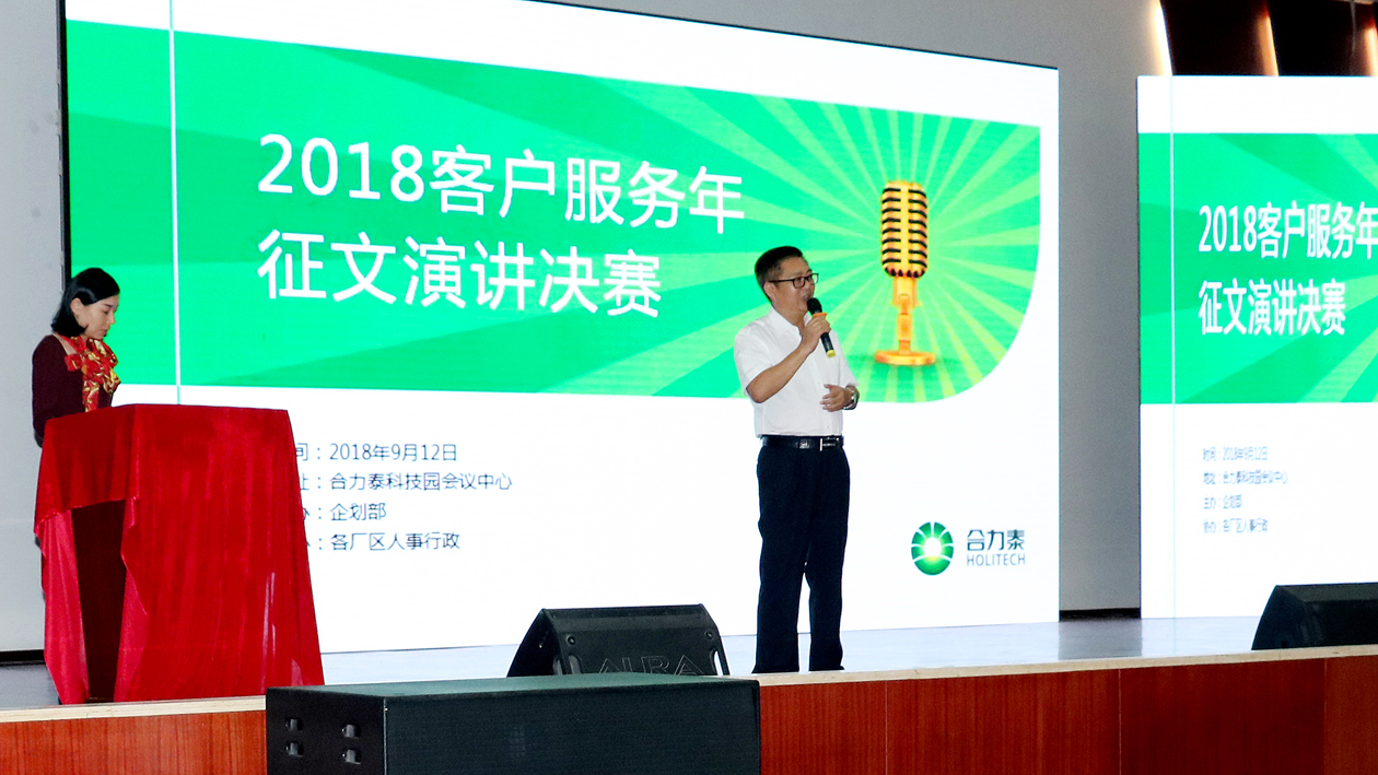 為響應(yīng)合力泰集團(tuán)打造2018客戶服務(wù)年的號(hào)召,增強(qiáng)員工服務(wù)意識(shí),激發(fā)服務(wù)熱情,提高客戶服務(wù)質(zhì)量,從而進(jìn)一步提升合力泰品牌形象和擴(kuò)大品牌影響力,同時(shí),為活躍公司文化氛圍,給廣大員工提供鍛煉自我、展示自我的平臺(tái),9月12日,合力泰2018客戶服務(wù)年征文演講比賽總決賽在江西泰和科技園會(huì)議中心隆重舉行。