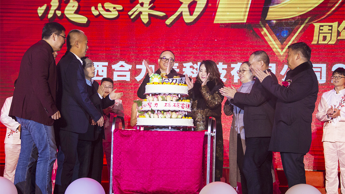 《十五載成長(zhǎng),恩情永不忘》生日慶祝環(huán)節(jié)更是將當(dāng)晚的氣氛推向了高潮。晚會(huì)播放了合力泰十五年發(fā)展歷程電子相冊(cè),一張張或熟悉或陌生的面孔、一個(gè)個(gè)零的突破、一次次新的跨越,讓我們重新回顧了公司一步步走來的歷程,此情此景,讓每個(gè)合力泰人都心潮澎湃。文開福董事長(zhǎng)攜高管團(tuán)隊(duì)共同上臺(tái)唱響生日歌、切蛋糕,分享公司十五周年的精彩與喜悅。